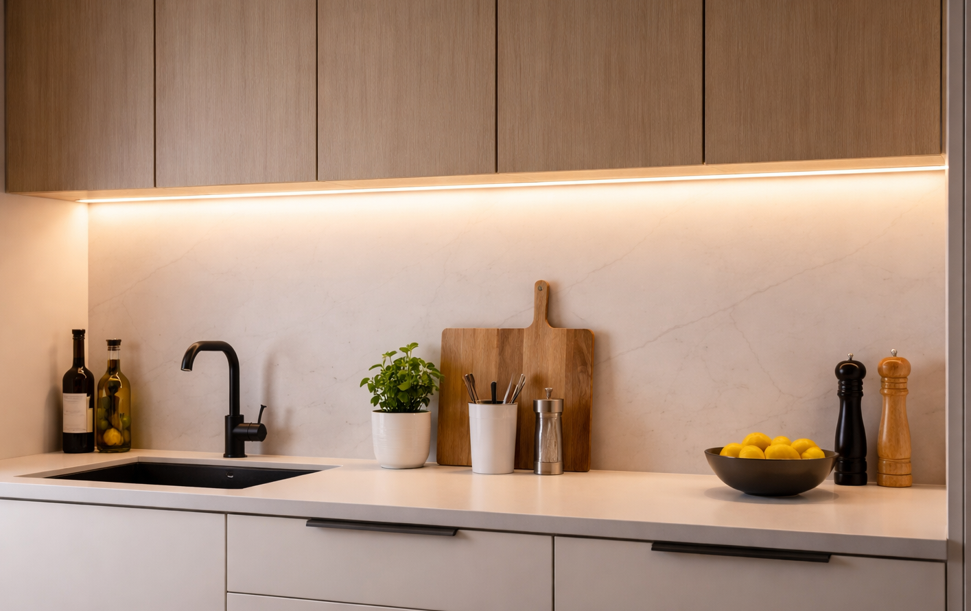 ✔ Ideal for visible installations (under cabinets, coves, etc.)