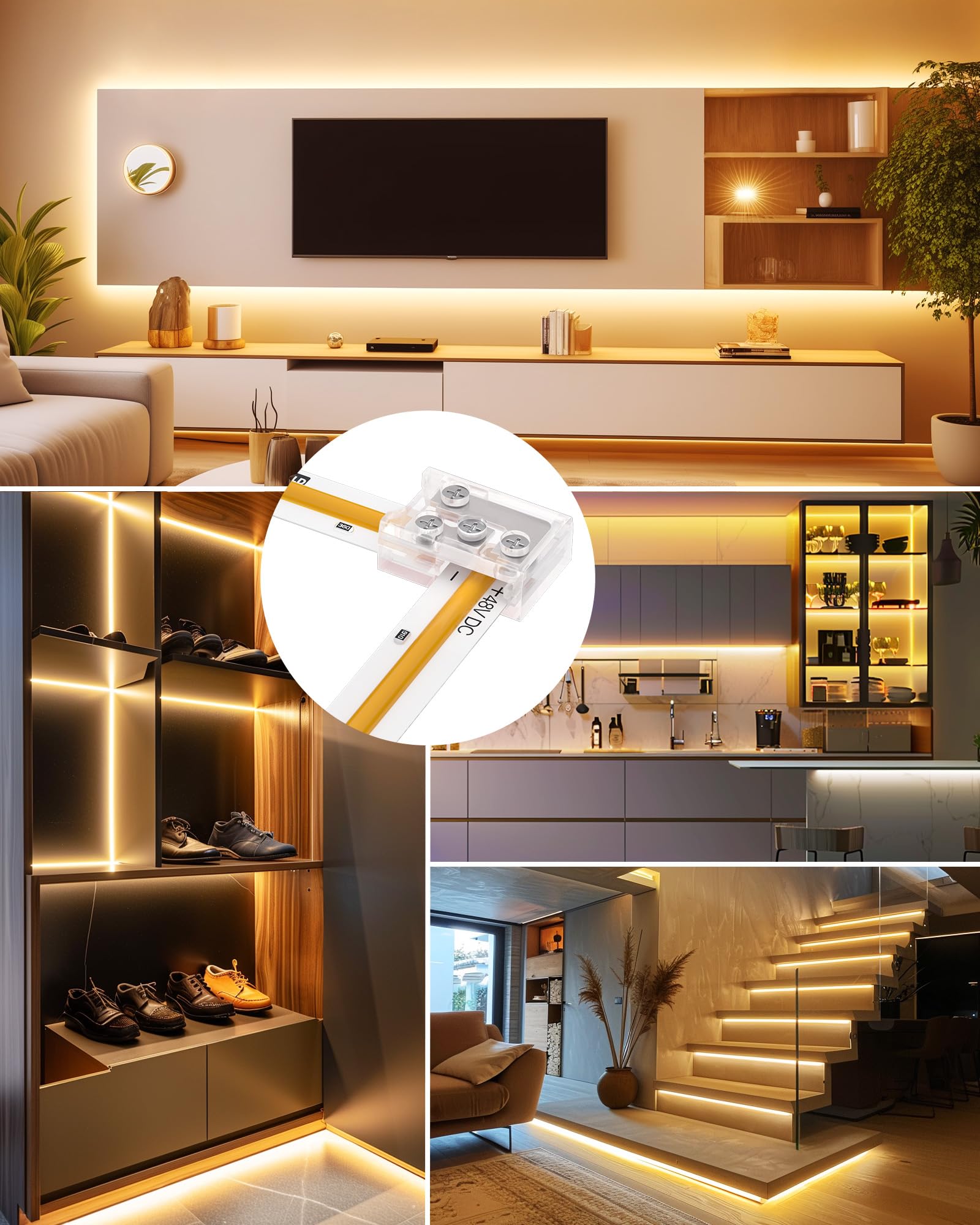Wide Compatibility: Available in both 8mm and 10mm, our LED connectors work with most 5V, 12V, 24V, and 48V 2-pin COB and SMD LED strip lights. Perfect for use with SMD2835, 5050, 5060, and 10mm width COB strip lights. (Note: Not suitable for 3-pin or 4-pin LED strips.)