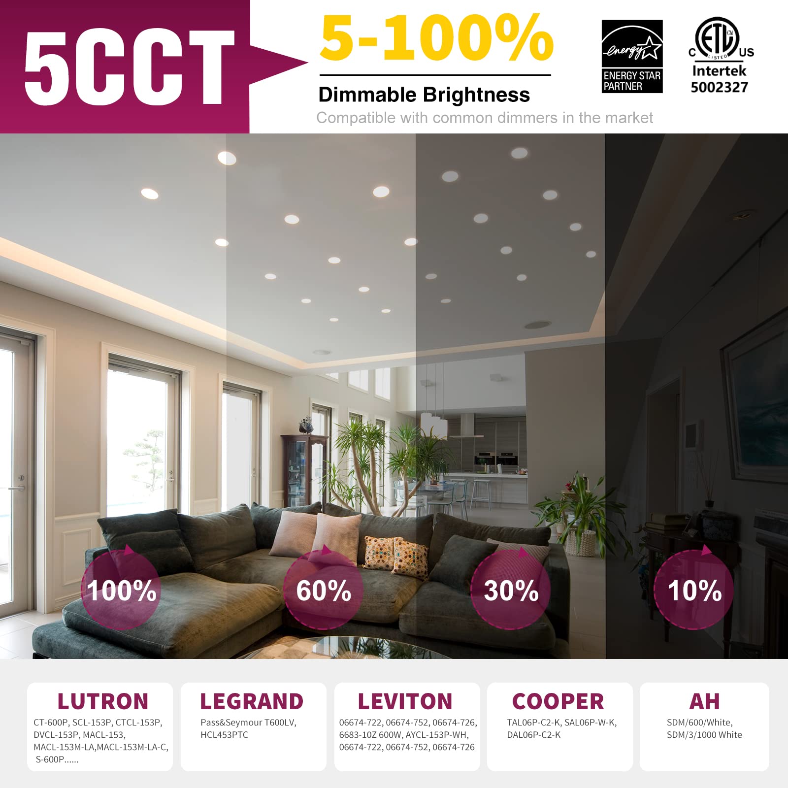 Compatible with: Lutron, Leviton, Legrand, Cooper AH and most Triac dimmers.