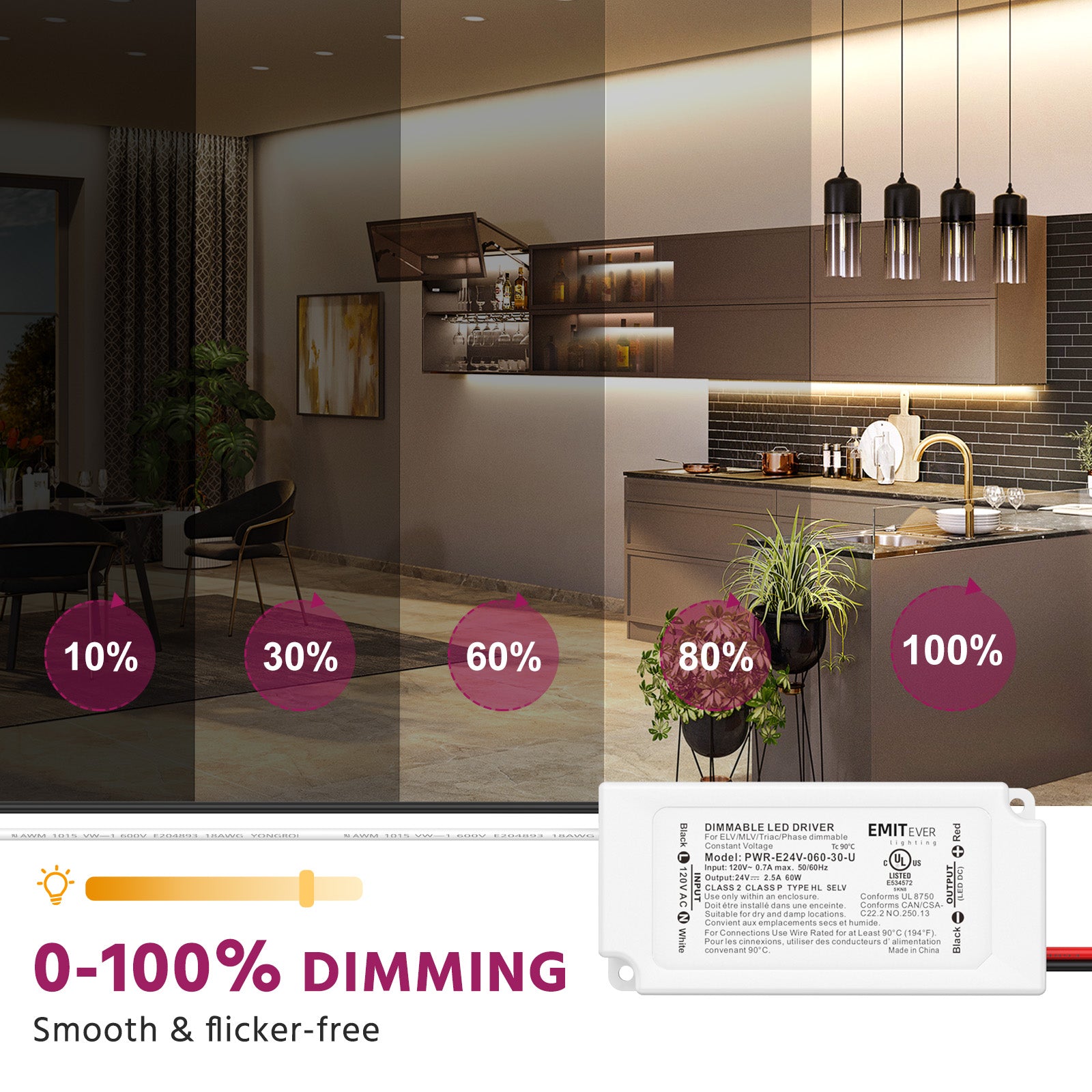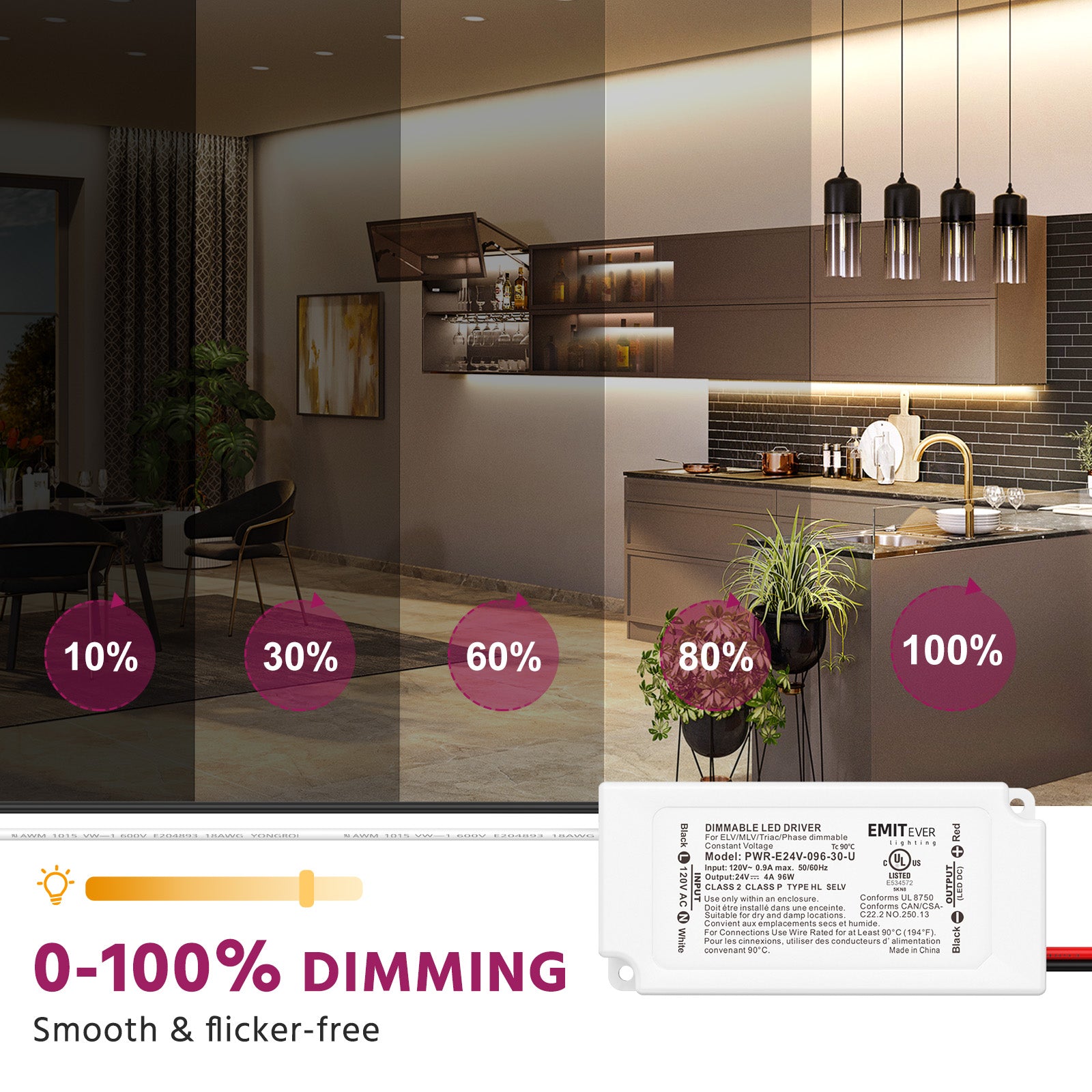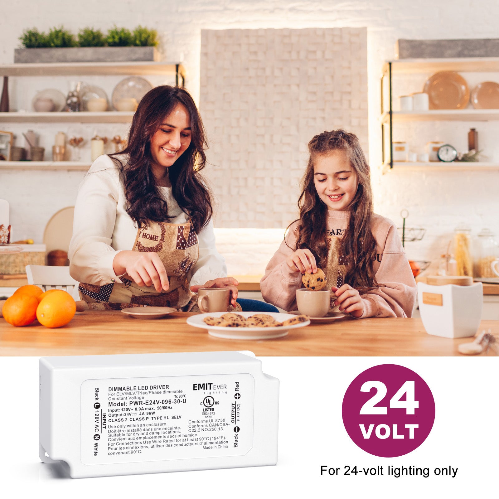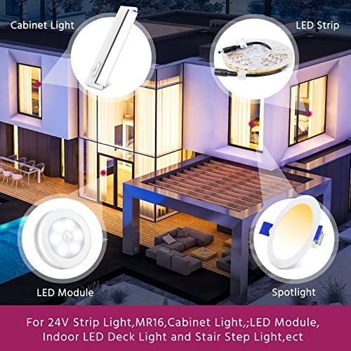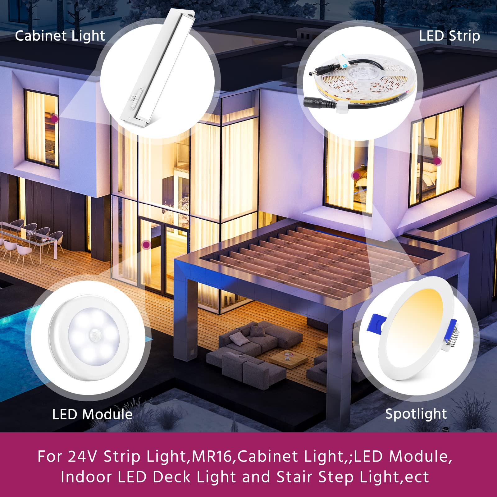 24V: Stable output for DC24 LED lighting such as LED strips, modules, light bars, puck, under cabinet, and other LED accent lights.